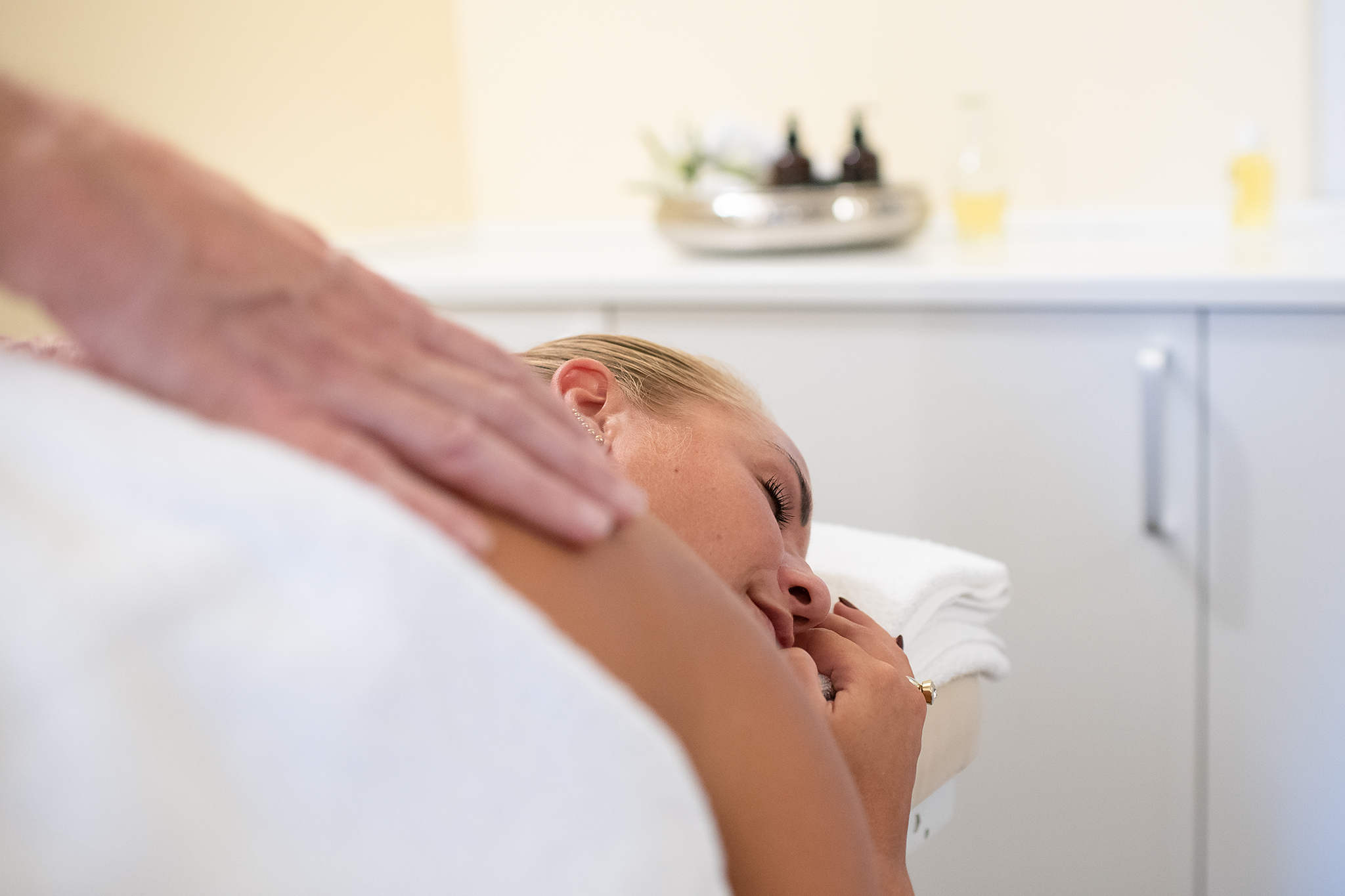 Når man træder ind i Kurbad Limfjorden, spreder der sig en stemning af ro og velvære. Her er højt til loftet og plads til forkælelse. Udsigten, som er altoverskyggende, danner rammen for en pause fra hverdagen, og er et smukt syn – selv på en gråvejrsdag hvor det hele går lidt i ét.