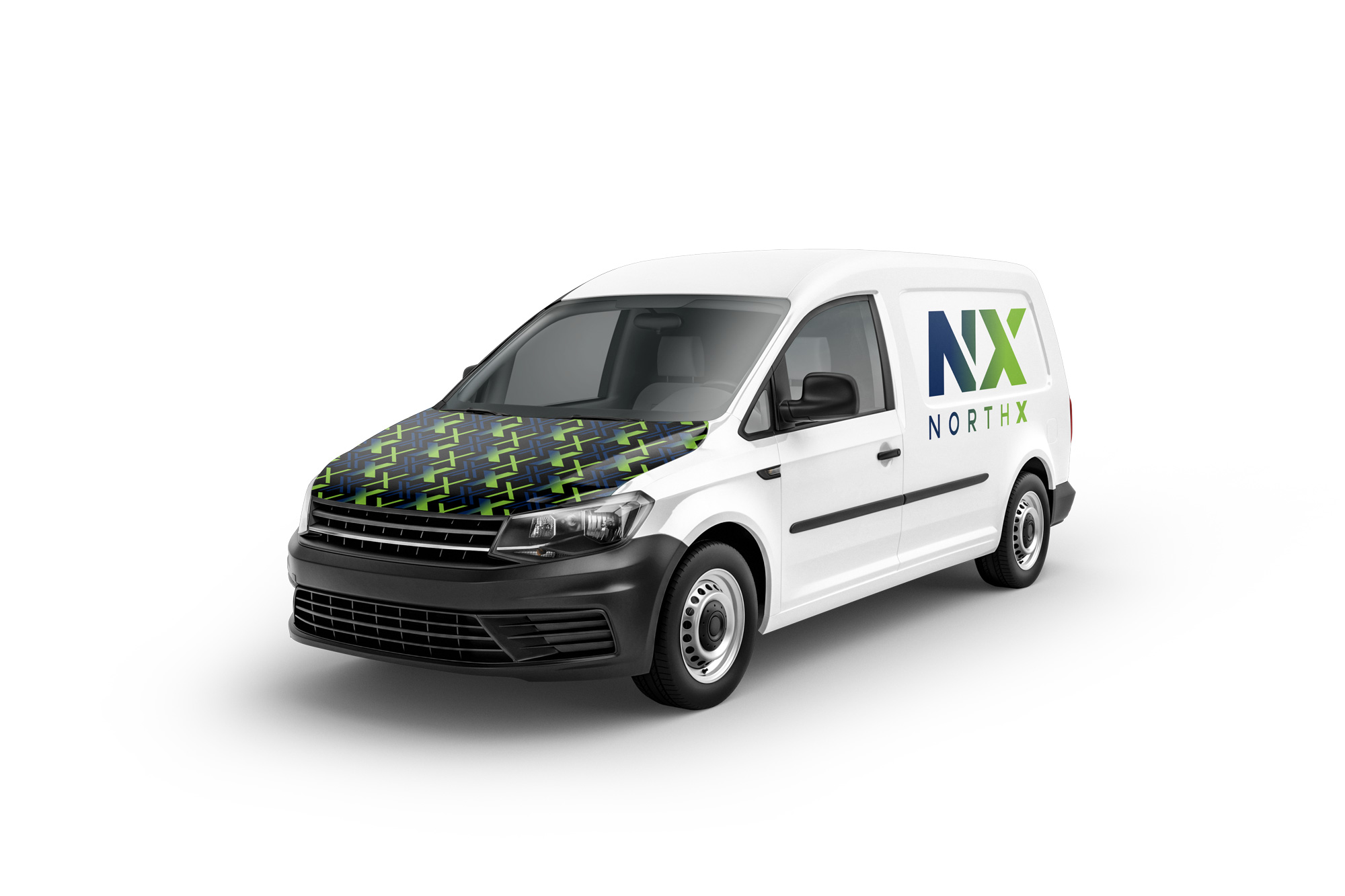 Logoet for NorthX består af et unikt og enkelt navnetræk, hvor fonten er speciallavet til formålet. Navnetrækket og bomærket skaber tilsammen et troværdigt og internationalt udtryk. Logoet kan fremgå med gradienten, inspireret af nordlyset, samt begå sig i rene farver.
