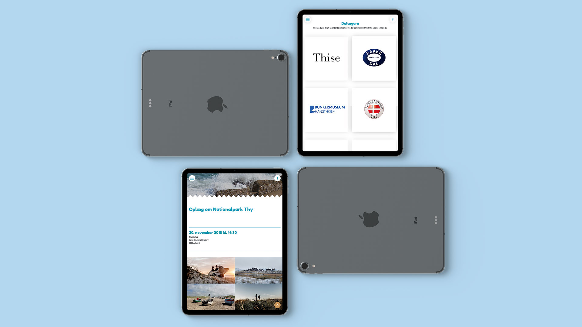 Deltagerlisten er ét af de vigtigste og største elementer på forsiden. Her har hver af deltagerne deres logo, som linker til en underside, hvor man kan læse mere om den pågældende virksomhed. Her findes også ekstra billedmateriale, kontaktoplysninger og et Google Map med den særlige markeringspin, der viser hvor virksomheden normalt holder til. Det understreger tilhørsforholdet til Thy.