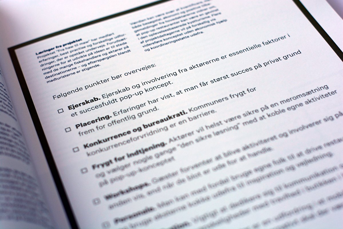 Med hvidbogen har vi nu fået en bog, som på en lækker, let, velskrevet, afvekslende og inspirerende måde fortæller om de mange veje, man kan gå for at udvikle kystturismen.