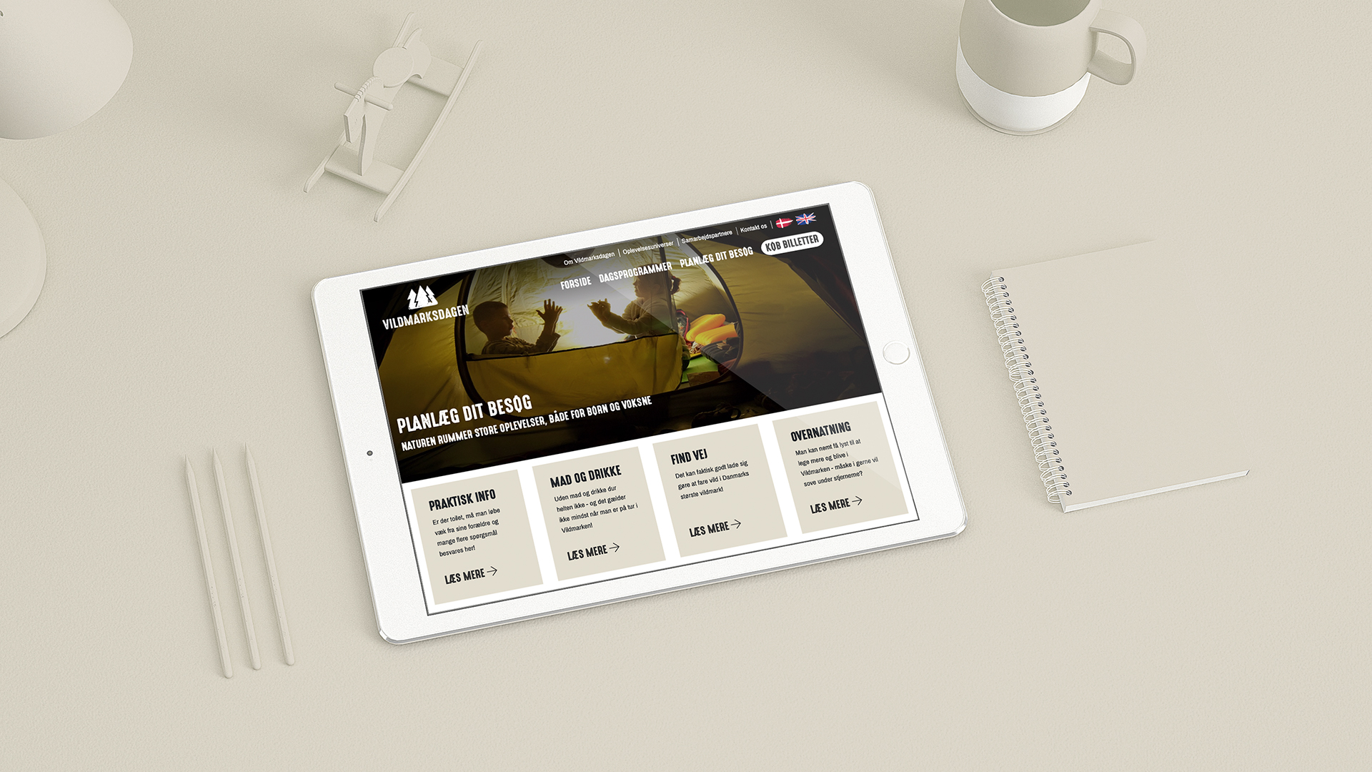Vildmarksdagen er et helt nyt oplevelseskoncept, der tager sit afsæt i den Thyske natur midt i Nationalparken. Kong Gulerod har på et tidligt tidspunkt bidraget til at forfine og virkeliggøre vores identitet, således at den har fået et stærkt og gennemgående træk, såvel på print, på digitale platforme samt mange af de fysiske skilte, som vi anvender i kommunikationen med gæsterne. Samarbejdet har været effektivt og konstruktivt, hvilket vi oplever beror på en god evne fra hele holdet til at sætte sig ind i, hvad vores koncept går ud på og skal skabe af oplevelser overfor kunden. Vi har samtidig haft stor glæde af den fysiske nærhed i Thy-huset, hvor mange snakke er taget hurtigt og kvikt over skrivebordskanten. Vi har altid mødt en åben dør og parathed til at imødekomme vores ønsker og vi er glade for samarbejdet, der fortsætter.