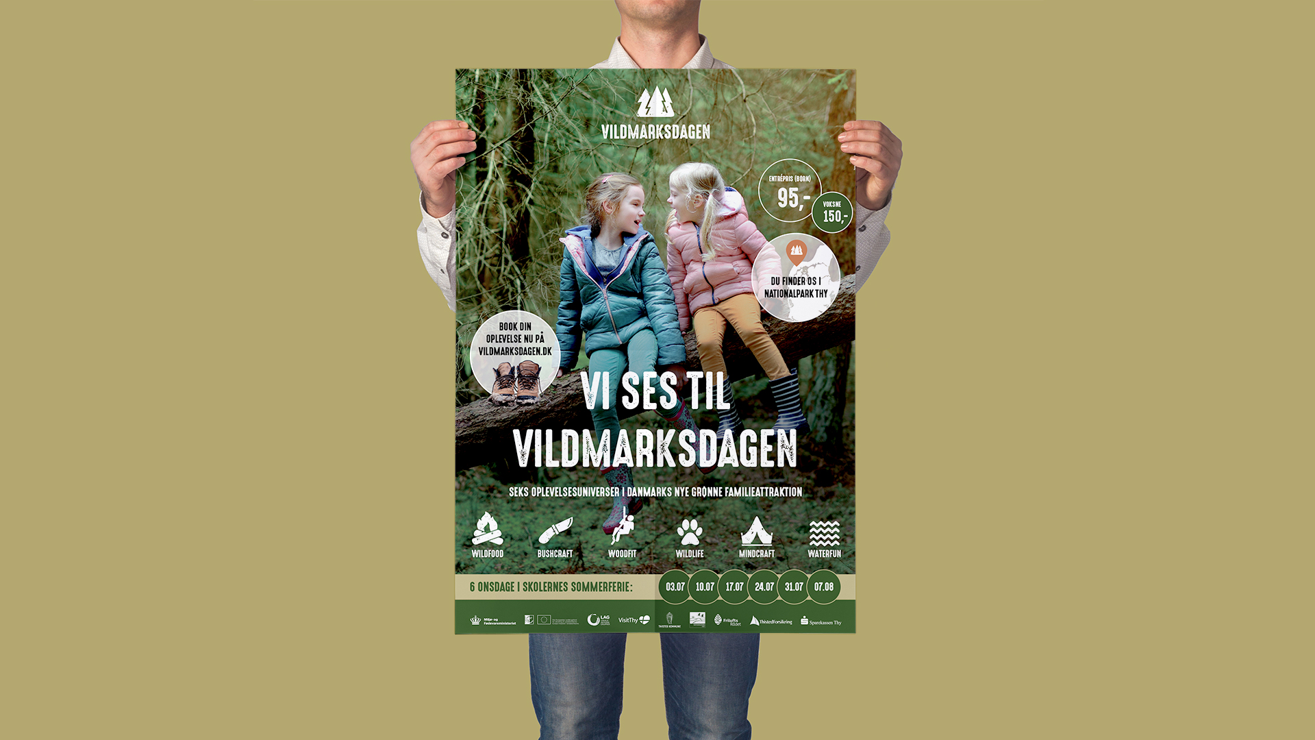 I forbindelse med arrangementerne, er det naturligvis vigtigt at skabe noget opmærksomhed omkring Vildmarksdagen – en god måde at gøre dette på, var via plakater og bannere i det offentlige rum. Med en rød tråd gennem hele den grafiske identitet og et visuelt udtryk der refererer direkte til naturen, er det også nemt og hurtigt for målgruppen at afkode hvad Vildmarksdagen handler om.
