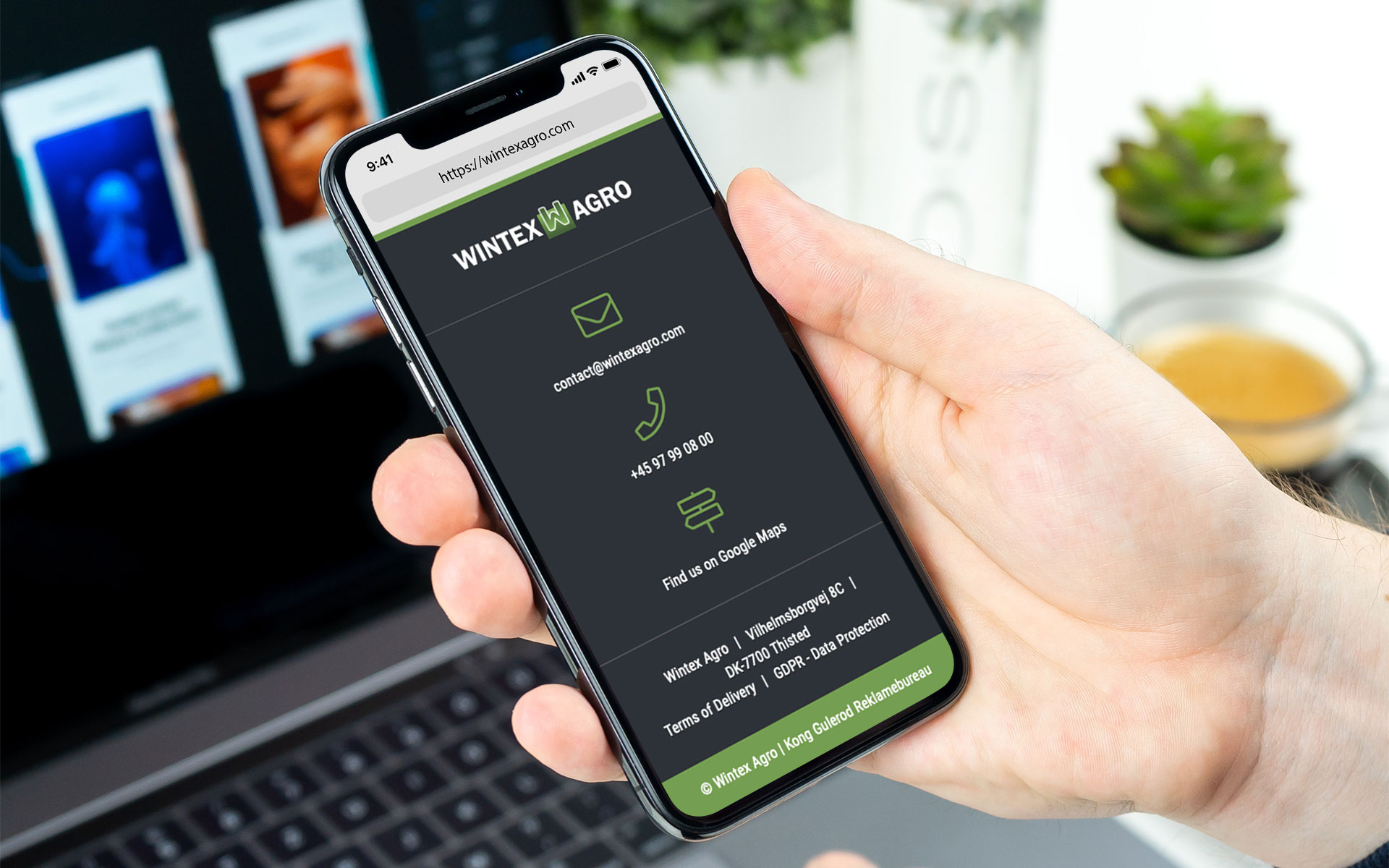 Wintex Agro’s nye hjemmeside er udviklet i Umbraco, som Kong Gulerod Reklamebureau er specialister i. Det er et CMS, der har uendelige muligheder for udvikleren, og som samtidig kan begrænses nok til, at den almindelige bruger ikke kan gøre noget forkert. Derfor er Wintex Agro selv i stand til at ændre, opdatere og vedligeholde indholdet, uden at skulle ”holdes i hånden” af en webudvikler.